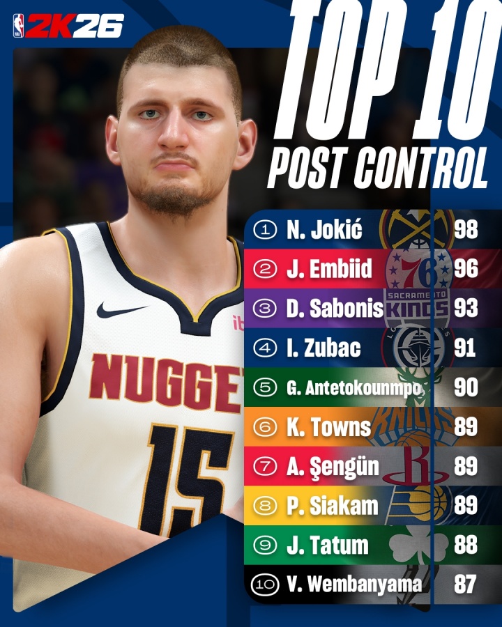 2K低位背打能力值:约基奇98位居榜首 恩比德第2 文班进前10 xiaoqiao 2025年09月01日 18:15 83 0 2K低位背打控制力能力值TOP10:1、约基奇 982、恩比德 963、小萨博尼斯 934、祖巴茨 915、字母哥 906、唐斯 897、申京 898、西亚卡姆 899、塔图姆 8810、文班亚马 87