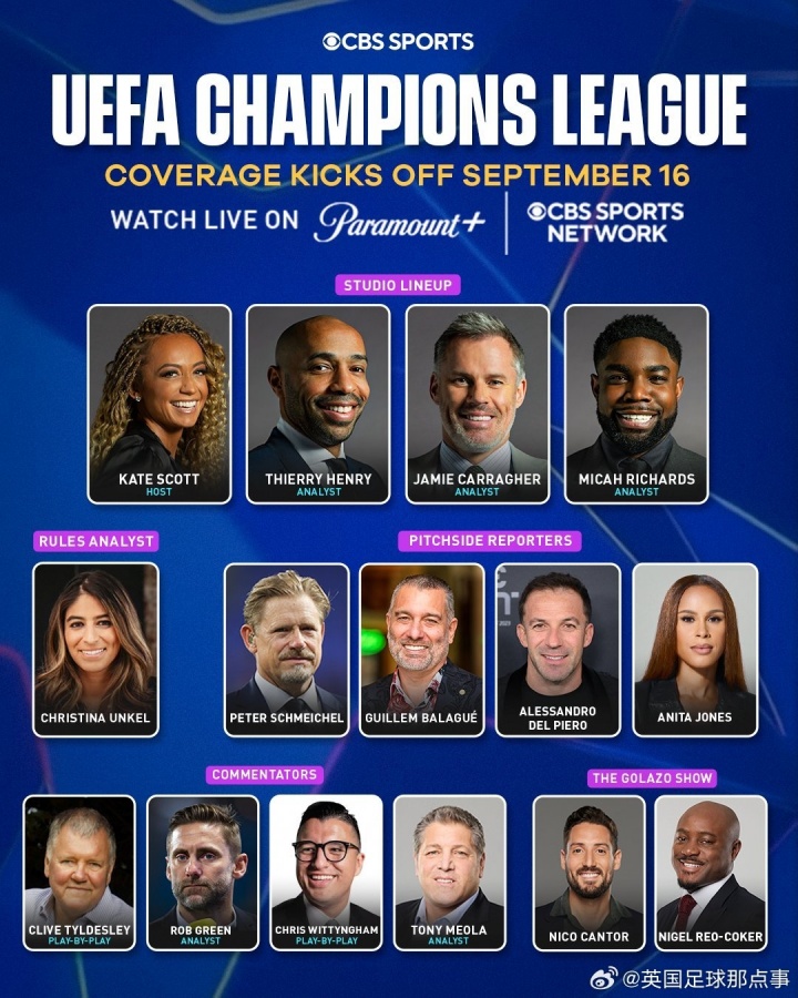 开云下载网址-🍿CBS体育确认王牌四人组继续担任新赛季欧冠转播任务 xiaoqiao 2025年09月12日 05:25 112 0 凯特·斯科特 (Kate Scott)蒂埃里·亨利 (Thierry Henry)杰米·卡拉格 (Jamie Carragher) 迈卡·理查兹 (Micah Richards)